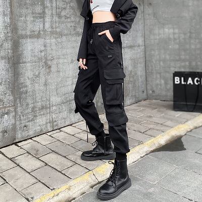 カーゴパンツ サルエルパンツ?ブラック 着痩せ スウェットパンツ ジョガーパンツ ロングパンツ ハイウェスト パンツ ストレート レディース服