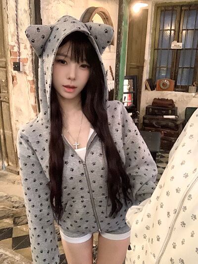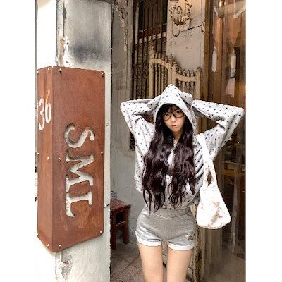 2024 秋冬 韓国 かわいい レディース無地フード付き長袖アウターレトロセット黑白フーディーブルサイズ丈トップス春カジュアルスポーツファッション系通学学生袖お出かけアップシルエットトラック上下羽織り