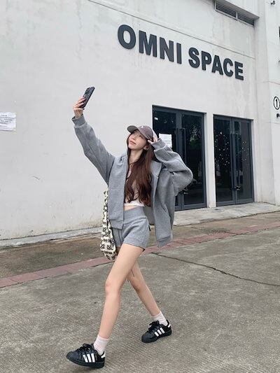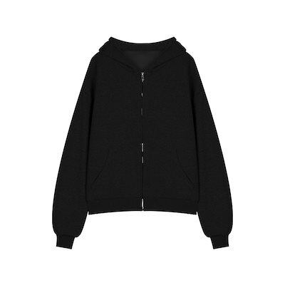 2024 秋冬 韓国 かわいい レディース 無地 フード付き長袖アウターレトロセット黑白フーディーブルサイズ丈トップス春カジュアルスポーツファッション系通学学生袖お出かけアップシルエット袖トラック