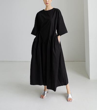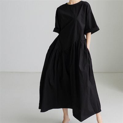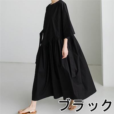 ワンピース ウエストマーク リボン ロング丈 袖あり 半袖 ワイド 韓国 レディース ふんわり オルチャン 可愛い かわいい きちんと 大人可愛い きれいめ シンプル カジュアル 大人 上品