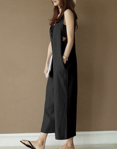 ジャンプスーツ カジュアルパンツ Vネック ノースリーブ ポケット ルーズ 韓国 レディース かわいい 可愛い 大人可愛い 大人女子 きれいめ シンプル カジュアル 大人 上品 おしゃれ