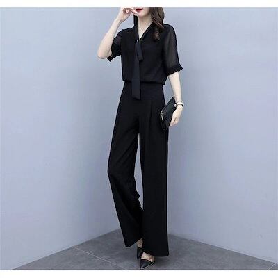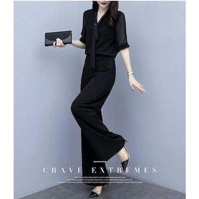 セットアップ レディース 夏 2点セット フォーマル 二次会 パンツ 黒 ワイドパンツ ゆった