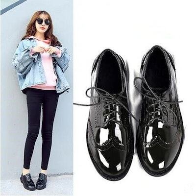 学院風 美脚 パンプス 編み上げ 走れる ローヒール レディース ブラック エナメル靴 痛くない 疲れない