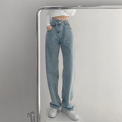 デニムパンツレディース イレギュラー クロス 新作 レトロ ハイウエスト 夏 ゆったり ストレート 細め ドレープ ワイドパンツ