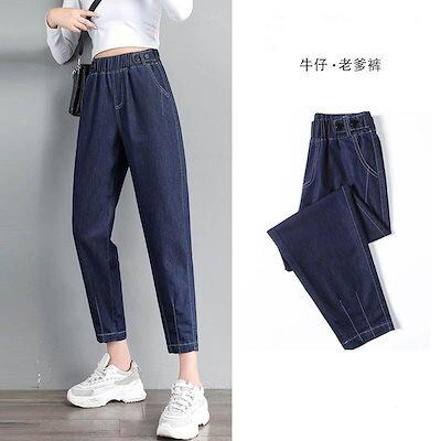 【3日以内出荷】脚長効果!スキニーデニムパンツ 腰を緩める ジーパン 秋の2024年モデル ストレートシリンダ ゆとりがある 九分ズボン カジュアル パンツ レディース 韓国