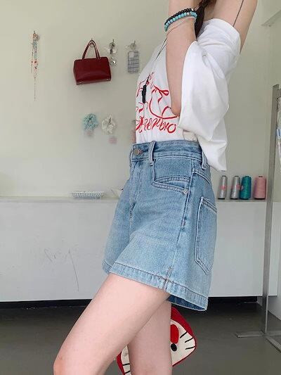 2024 春夏パンツ ショート丈 デニム ジーンズ ワイド ハイウエスト 美脚効果 脚長効果 細見え 夏 水色 黒 おしゃれ かわいい 韓国ファッション レディース お出かけ