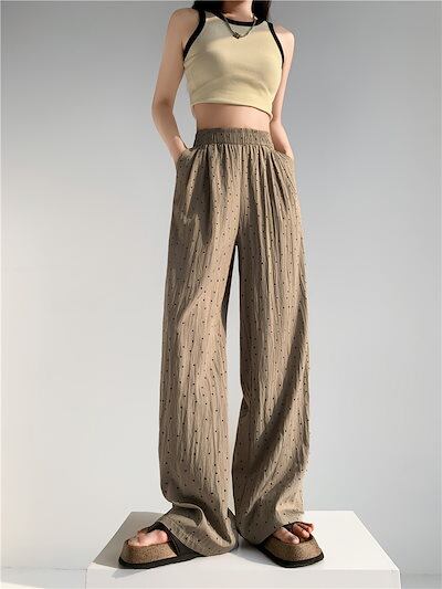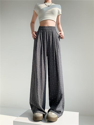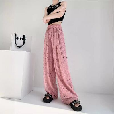 韓国 ワイドパンツレディース春夏薄氷シルク涼感パンツハイウエストドレープストレートパンツカジュアル日焼け止めパンツロングパンツ