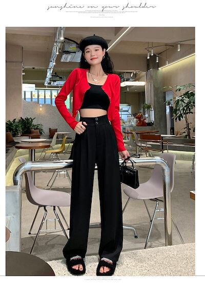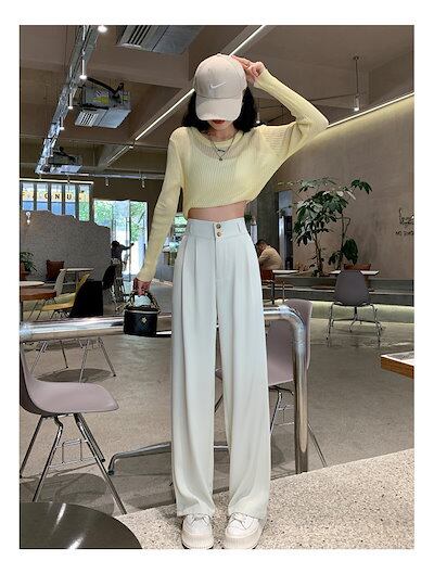 ワイドパンツ ワイドパンツ レディース 2024春夏新作ハイウエストドレープワイドパンツ スリムストレートホワイトスーツパンツ