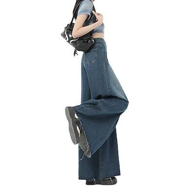 脚長効果!デニムワイドパンツ おしゃれ 流行り デニムパンツ ハイウエスト ワイドパンツ ジーンズ レディース レトロ ゆったり ズボン スラックスパンツ