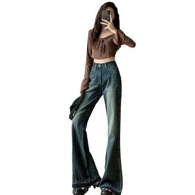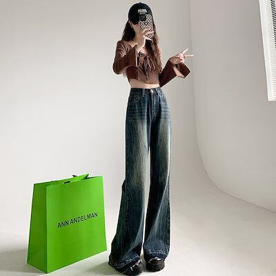 スラックスパンツデニムパンツ レディース ゆったり ワイド ハイウエスト フレア ダメージ 大きいサイズ レディースロングパンツ ストレート