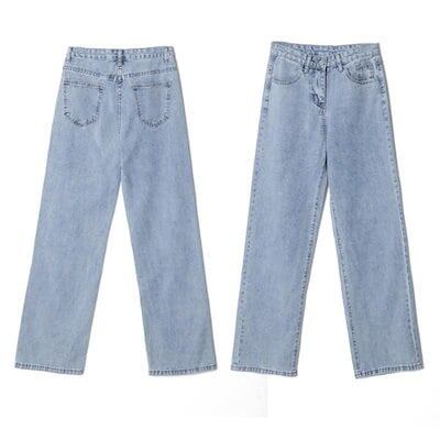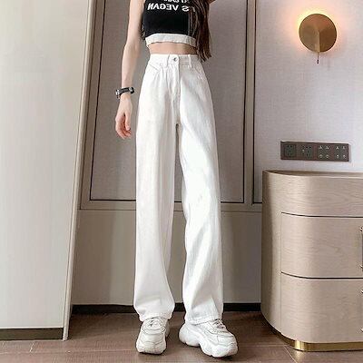 脚長効果!デニムパンツ レディース ワイドデニムパンツハイウエストルーズスキニーストレートドラッグパンツ