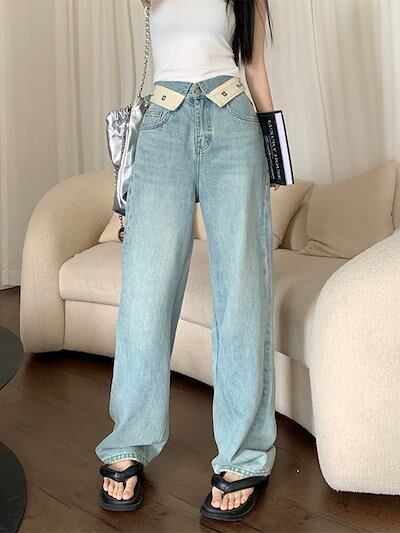 デニムパンツ レディース 夏 ハイウエストスリムワイドパンツ可愛らしい おしゃれロングパンツ