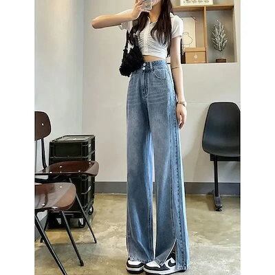 ハイウエスト スリットフォーク スリム ジーンズ レディース 修身 着痩 ファッション レディース ズボン