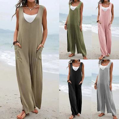 春 夏 人気なオールインワン パンツ ワイドパンツ ロング ウエストマーク オーバーオール レディース 体型カバー サロペット