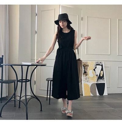 サロペットオーバーオールパンツレディース九分丈ワイドパンツ綿麻春夏ロングズボン無地大きいサイズサロペット304050オシャレ着痩せ