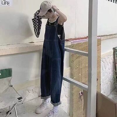 サロペットデニムオーバーオールレディース2024夏の新型日系レトロストリートバックルジーンズゆったりスリムワイドパンツタイツ工装ロングパンツ