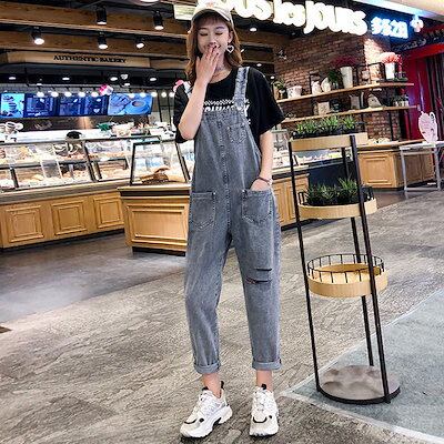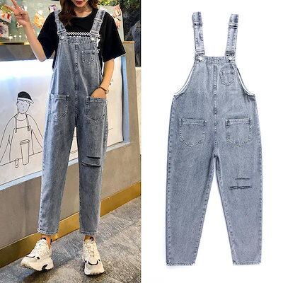 オーバーオール レディー ゆったり 韓国 ズボン 春秋 新作 レトロ ハイウエスト デニム オールインワン