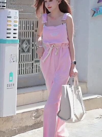 気質 カジュアル オーバーオール レディー 夏 新作 ズボン ラージコード ワイドパンツ オールインワン