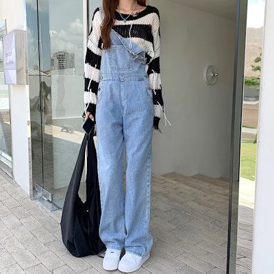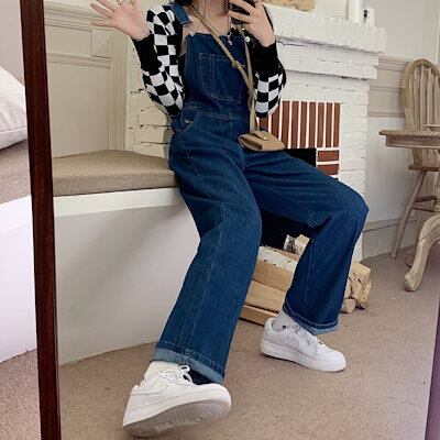 2024新作オーバーオールハイウエストデニムオーバーオールレディース韓国バージョンルーズで薄いハーレムワイドレッ