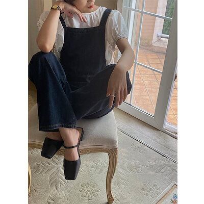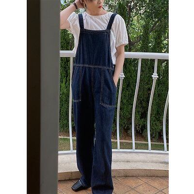 サロペット ジャンパーパンツ レディース オーバーオール デニム マキシ丈 カジュアル 作業着 レト