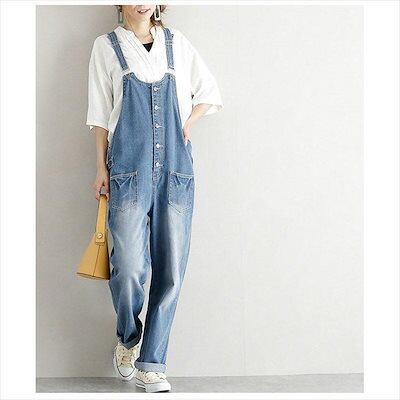 オールインワンSHJIAN サロペット ガウチョパンツ オーバーオール ワイトパンツ レディース ロングパンツ 薄手 着痩せ デニム ゆったり かわいい 春夏秋
