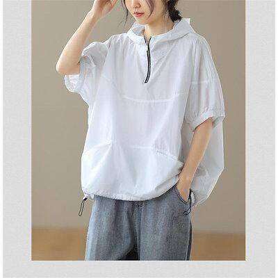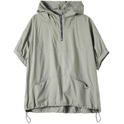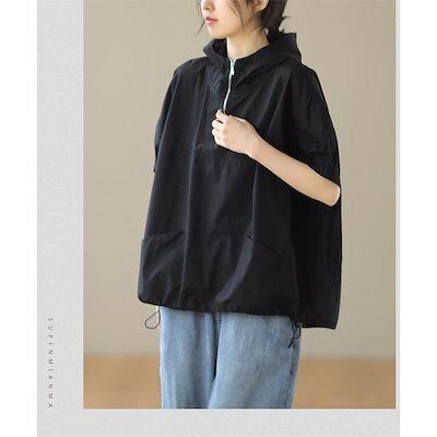 パーカー レディース ブラウス 春 夏 秋 フード付き 半袖 tシャツ 夏 ゆったり ビッグシルエット トップス 着心地 大人 体型カバー UVカット プルオーバー