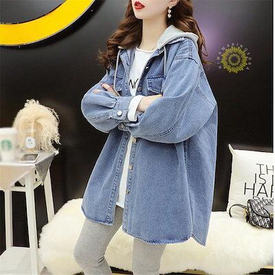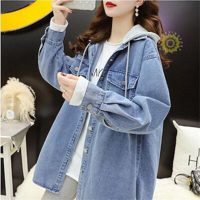 デニムシャツ パーカー レディース フード付き トップス 羽織 スウェット UVカット 長袖 紫外線 冷房対策 体型カバー 春 夏 秋 おしゃれ