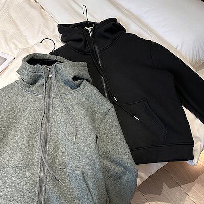 秋冬 裏起毛厚手 パーカー レディース ゆったり ジップアップ アウター フード付き ショート