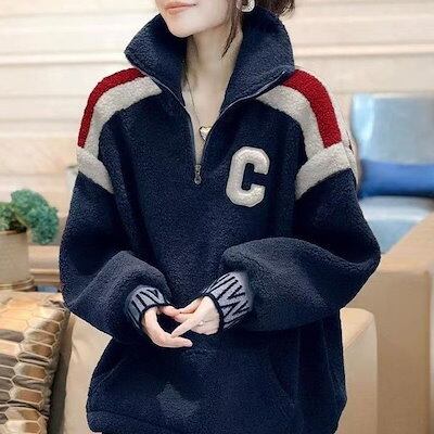 【人気上昇中】 大人カジュアル 防寒 ファッション ファスナー アルファベット パーカー 秋 冬 レディース