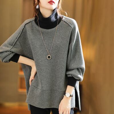 【大好評レビュー】 フェミニン 混色 ハイネック 防寒 切り替え パーカー 秋 冬 レディース