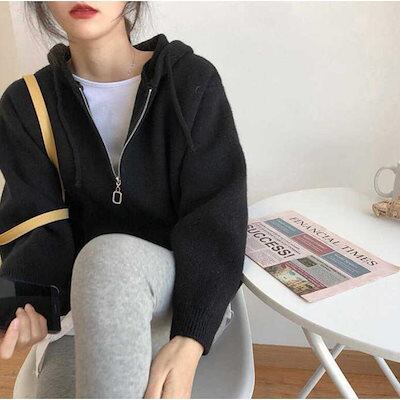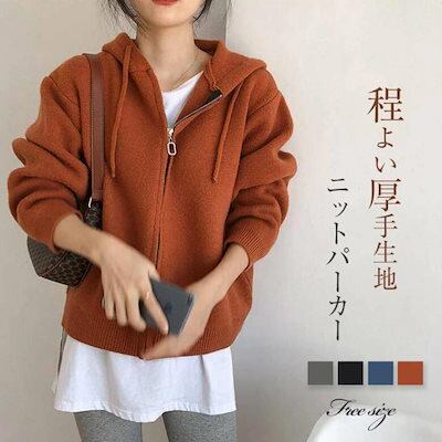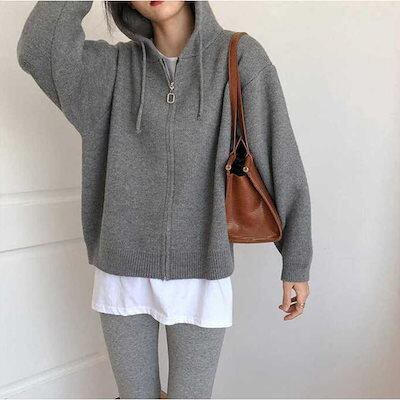 ニットパーカー レディース ニットカーディガン 秋冬 フード付き カーディガン 羽織り 上着 ニット カーディガン ニット セーター ゆったり 春