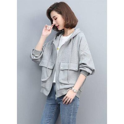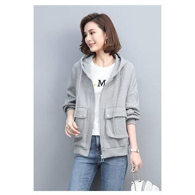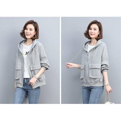 パーカー レディース 長袖ジャケット フード付き アウトドア 韓国風 アウター 無地 カジュアル 秋服 春秋 おしゃれ 着痩せ 短め 通勤