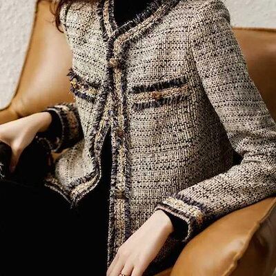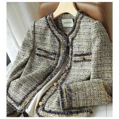 超人気 フォーマル ノーカラージャケット 長袖 アウター ツイード 上品 ツイードコート 秋 レディース 冬 アウター 羽織り オフィス 通