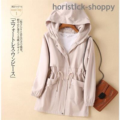 品質いいな新品 トレンチコート レディース スプリングコート レディース 春 春コート 春物 春服 コート 無地 ロングコート 長袖 フード付き ライトアウター ジャケット 羽織り