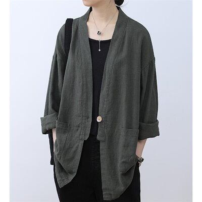 ノーカラージャケット レディース カーディガン ジャケット 綿麻 サマージャケット アウター 薄手
