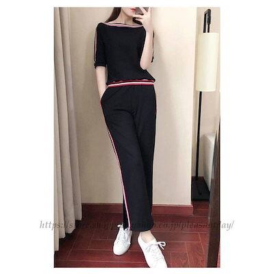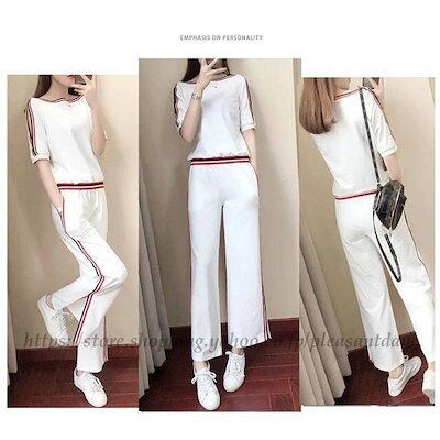 セットアップ レディース トップス ガウチョパンツ 上下セット スウェット 2点セット ウエストゴム 体型カバー 大きいサイズ