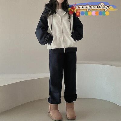 上下セット レディース セットアップ スウェット 切り替え ジップアップ フード付き 長袖 パーカー ジョガーパンツ ロングパンツ