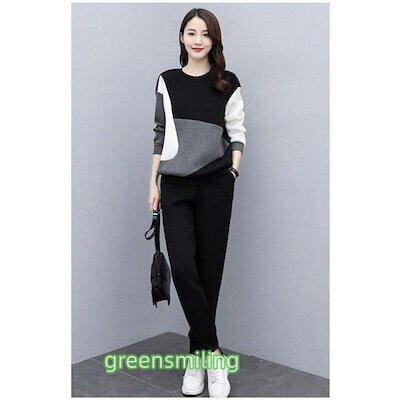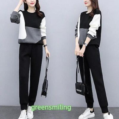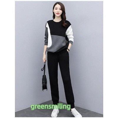 セットアップ レディース 秋冬 配色スウェットセット スポーツウェア 長袖レーナー ロングパンツ 2点セット 運動着/部屋着 カジュアル ジャージ 大きいサイズ