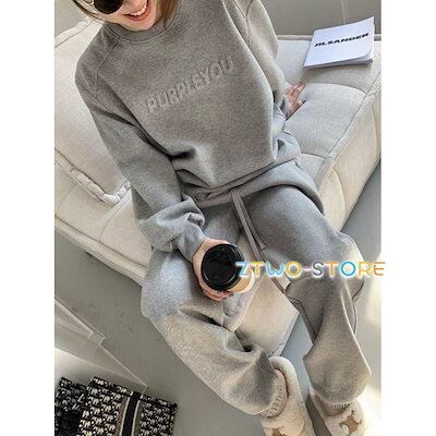 上下セット レディース セットアップ ジャージ 長袖 裏起毛 防寒 暖かい トレーナー ロングパンツ 部屋着 ルームウェア 運動着 普段着