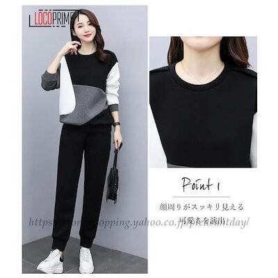 セットアップ スウェット レディース 運動着 部屋着 韓国風 ジャージ 上下セット 着痩せ 体型カバー ジョガーパンツ 20代 30代 40代 50代 大きいサイズ