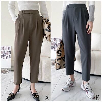 レディース ボトムス アンクル丈 スラックス ロング パンツ 無地 秋冬 カジュアル 大人可愛い シンプル ビジネス オフィス きれいめ きちんと感 お出かけ デート デイリー ブラウン グレー