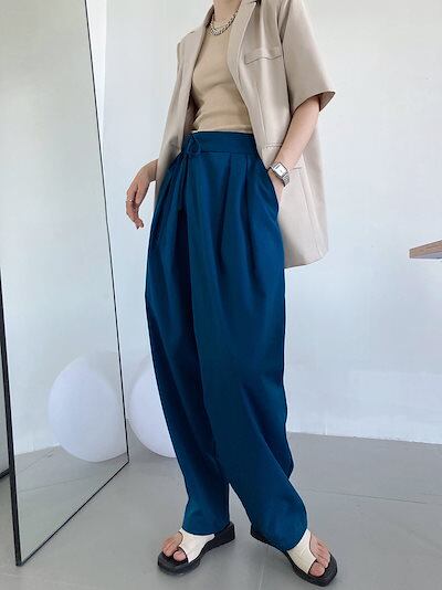 韓国ファッションレディースロング丈ズボンモップパンツ青い薄手ロング丈ズボン人気スラックスパンツスーツ福袋