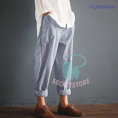 新品(タイムセール)サルエルパンツ レディース ロング丈 ボ テーパードパンツ チノパン ロングパンツ パンツ ゆったり コットン リネン 綿麻 ストライプ 薄手 春 夏 秋