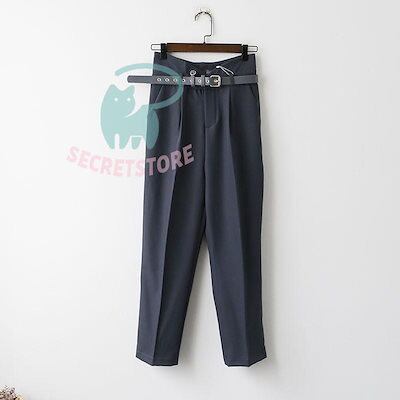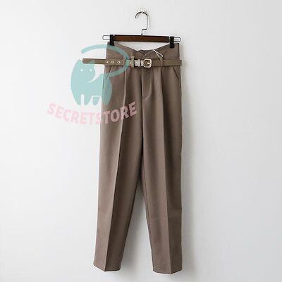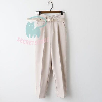 新品(タイムセール)テーパードパンツ パンツ レディース ボ ハイウエスト ベルト付き 体型カバー 楽ちん オフィス 就活 カジュアル 通勤 ズボン 無地