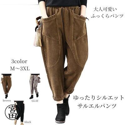冬の暖かさ!サルエルパンツ レディース コーデュロイ アラジン テーパード アメカジ ズボン ウェストゴム ゆったり 大きい 体型カバー リラックス ボトムス 春 秋冬 コーデ