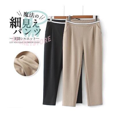 テーパードパンツ パンツ レディース ボ ハイウエスト ウエストゴム 体型カバー 楽ちん オフィス 就活 カジュアル 通勤 ズボン 無地