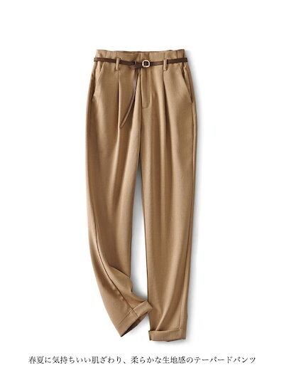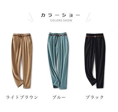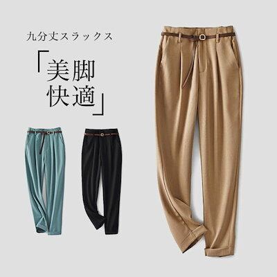 スラックス レディース ロングパンツ テーパードパンツ 9分丈 パンツ ズボン 長ズボン 腰ゴム ベルト 通気性 ソフト シンプル 無地 美脚 脚長 女性 ボトムス ロールアップ スタイルアップ ゆっ