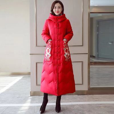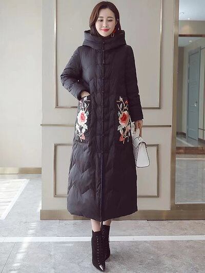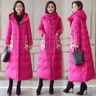 刺繍ロングタイプ綿ジャケット韓国ファッション 秋冬マキシ丈アウター 防寒中綿ロングコート レディース綿ブルゾン 防寒 厚手ジャケットフリースで決まり!