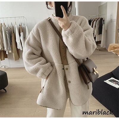 フリース レディース ボア ボアコート パーカー ブルゾン 軽量 もこもこ 無地 防寒 保温 秋冬 体型カバー ゆったり アウター