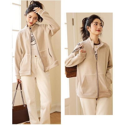 フリース ボア コート レディース ジップアップ フリース ハイネック 揺粒絨 トップス 防風 裏起毛 通勤 長袖 アウター 軽量 厚手 防寒